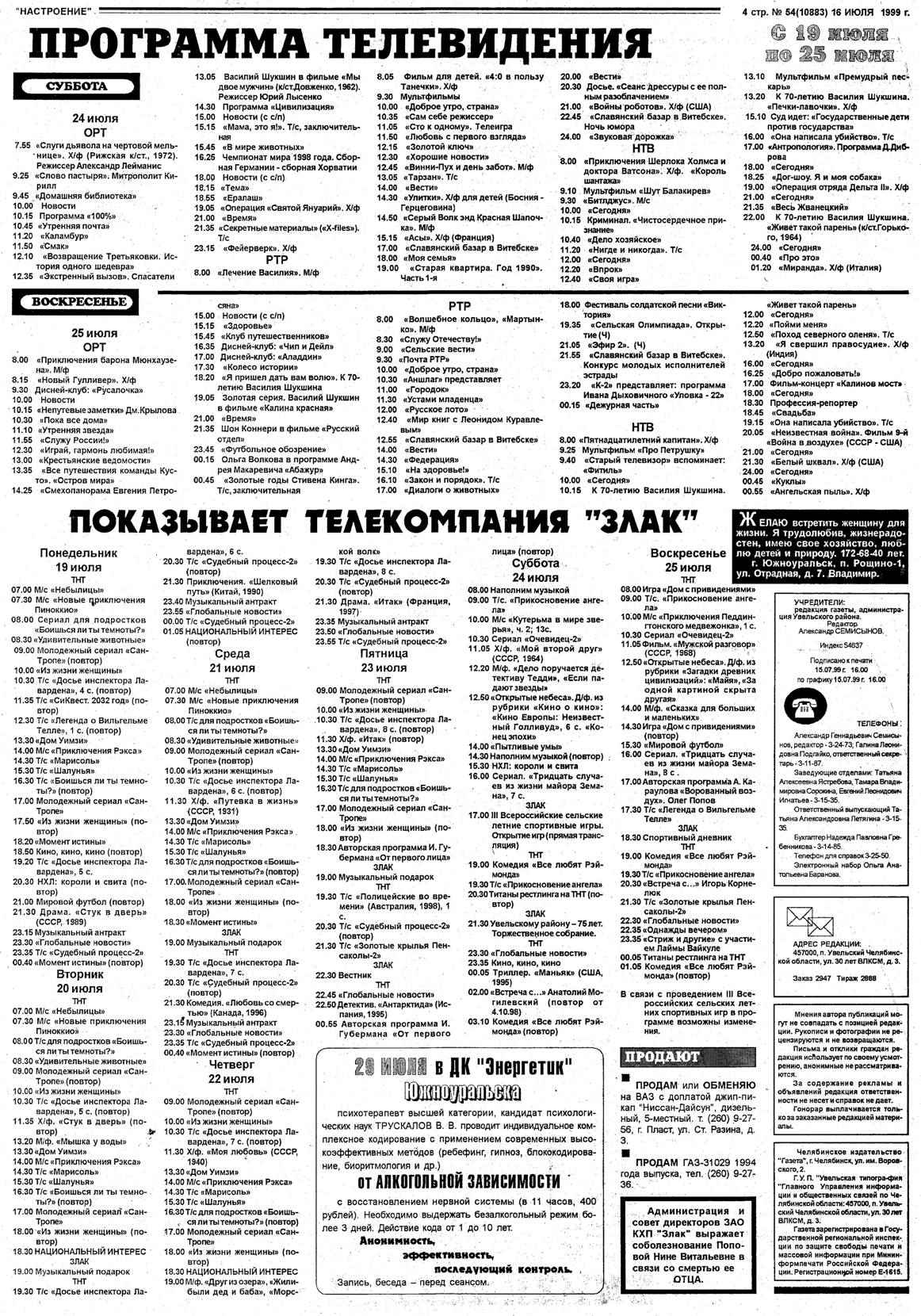 16 июля 1999 год